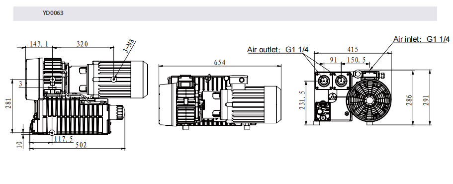 YD series vacuum pump is a basic vacuum obtaining equipment. The main features are single-stage compression, three-piece rotating blade structure, and the use of special vacuum pump oil as the working fluid (lubrication, heat conduction, and cleaning of the working chamber).